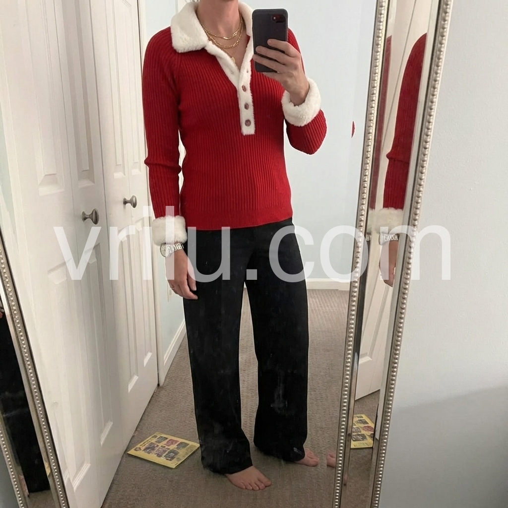 This red ribbed top features a striking color block design and a faux fur trim that adds a touch of luxury to everyday wear. Equipped with button-front closure, it allows for versatile styling and easy layering. The ribbed fabric offers a comfortable, form-fitting silhouette, making it ideal for both casual and polished looks.