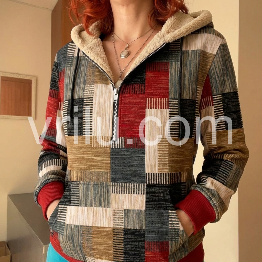 This versatile sweatshirt combines comfort with contemporary style through its distinctive patchwork design. The fleece lining provides warmth and softness against the skin, making it ideal for layering during cooler months. The zip-front closure allows for easy adjustment and ventilation, while the casual silhouette works seamlessly with jeans, joggers, or athleisure wear. Durable construction ensures lasting wear through frequent washing and everyday use. Perfect for weekend outings, casual work environments, or relaxed social gatherings.