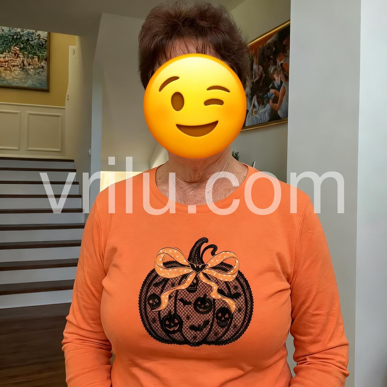 Orange Round Neck Long Sleeve Top