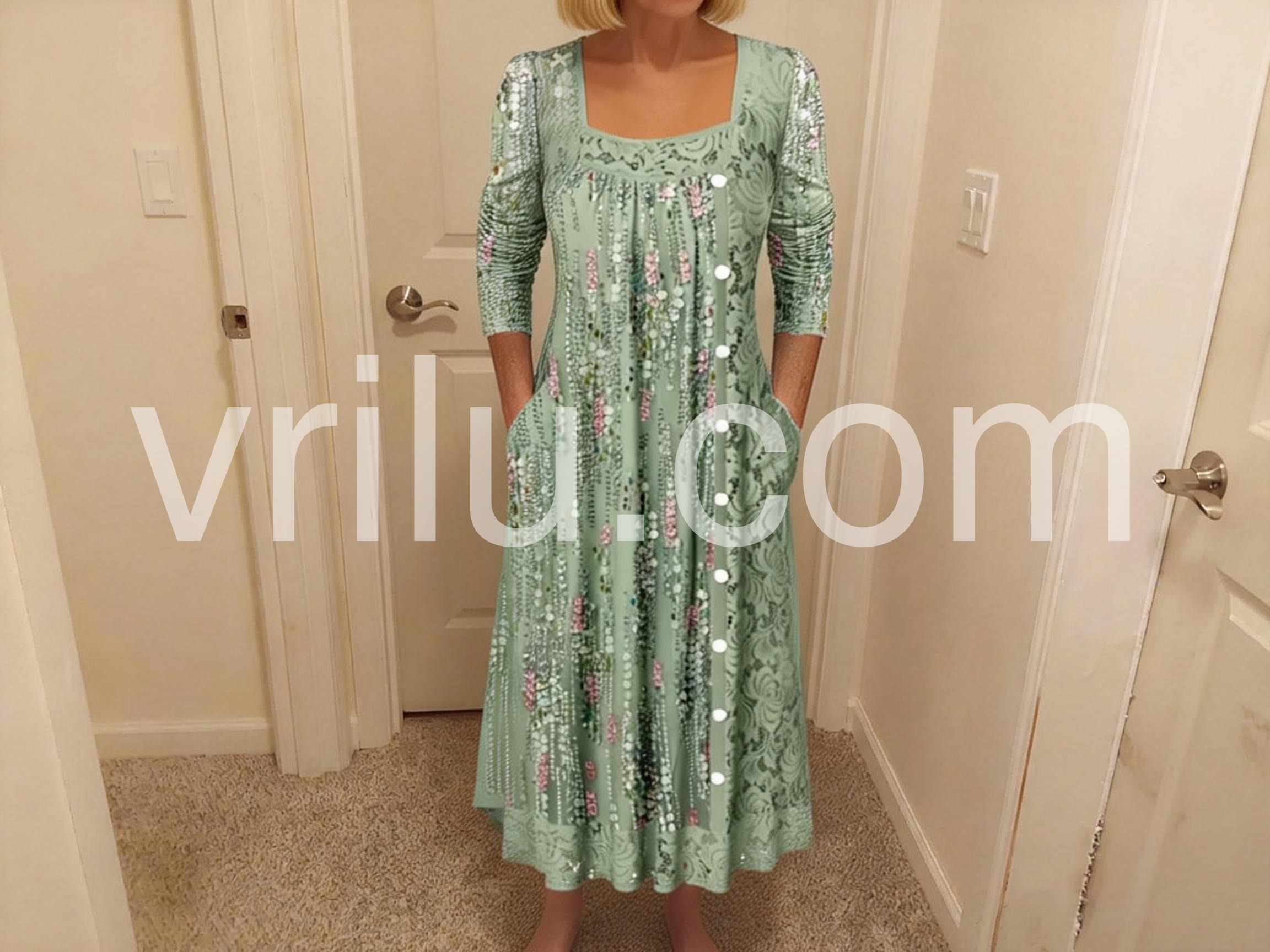 Imagine effortless elegance that turns heads at every glance. This fresh green midi dress captures modern sophistication with its architectural square neckline that frames the collarbone beautifully, paired with graceful long sleeves for refined polish. The A-line silhouette flows with understated grace, while the luxurious rayon-elastane blend moves like silk against your skin—stretchy enough for all-day comfort, yet structured enough to maintain its impeccable shape. Practical side pockets add a touch of everyday luxury, while the midi length strikes the perfect balance between timeless and contemporary. Whether you're navigating the office, attending weekend brunches, or stepping into evening plans, this dress adapts seamlessly to your lifestyle. Machine washable for effortless care. Discover the dress that makes you feel as good as you look.