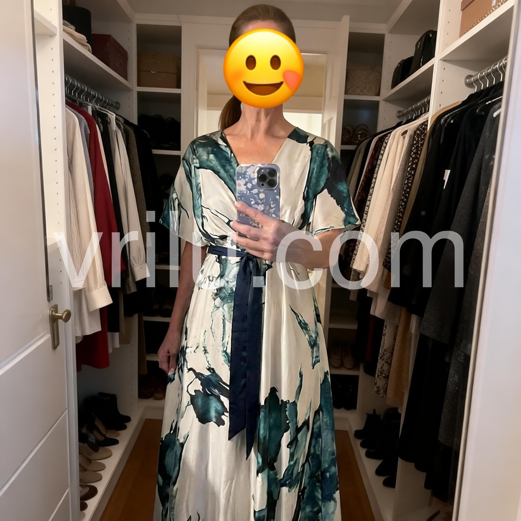 This trendy V-neck short sleeve maxi dress is the perfect addition to your wardrobe. Made with a flattering v-neck design and short sleeves, this dress is both stylish and comfortable. The maxi length adds sophistication, making it a versatile option for any occasion. Upgrade your look with this must-have piece.