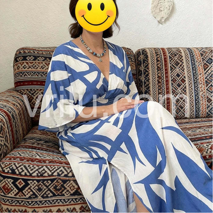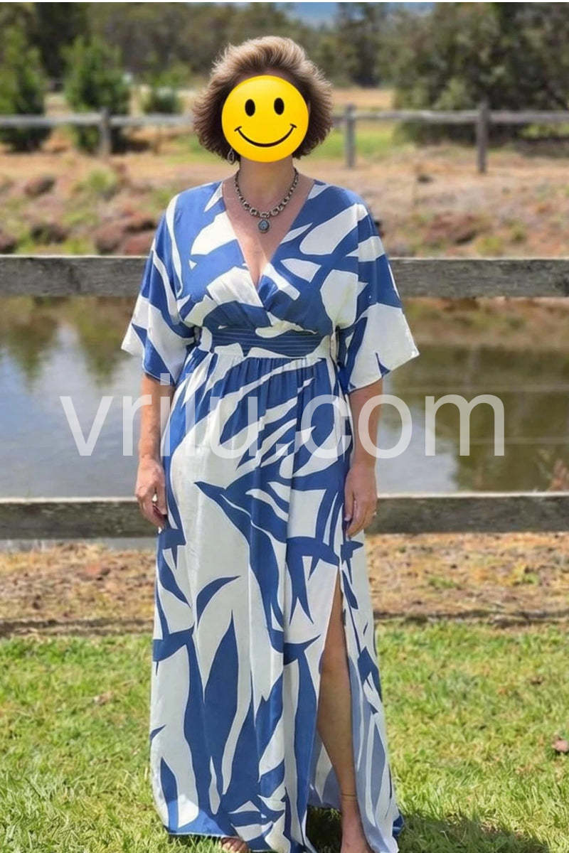 Blue Print 3/4 Sleeve Maxi Dress