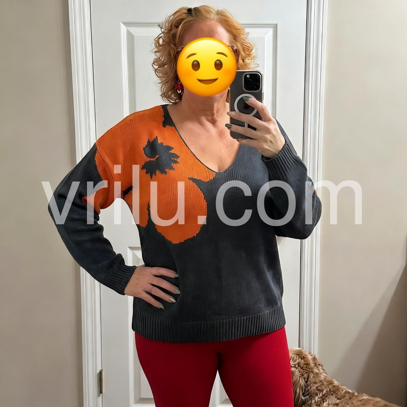 This grey floral print long sleeve sweater is a stylish and versatile addition to any wardrobe. With its beautiful floral design and comfortable long sleeves, it will keep you warm and on-trend. Made with high-quality materials, it offers both style and comfort for any occasion.