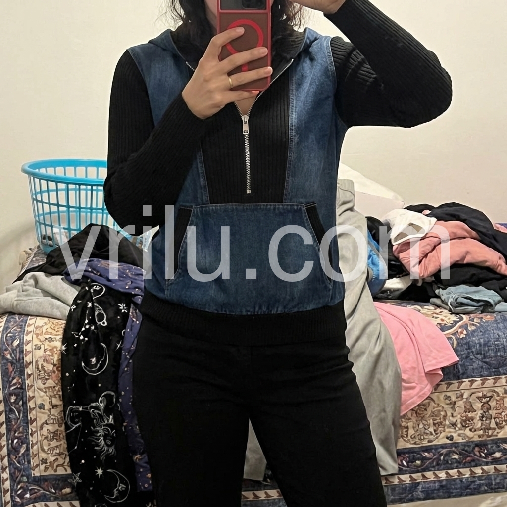 Cool Half Zip Kangaroo Pocket Denim Sweatshirt