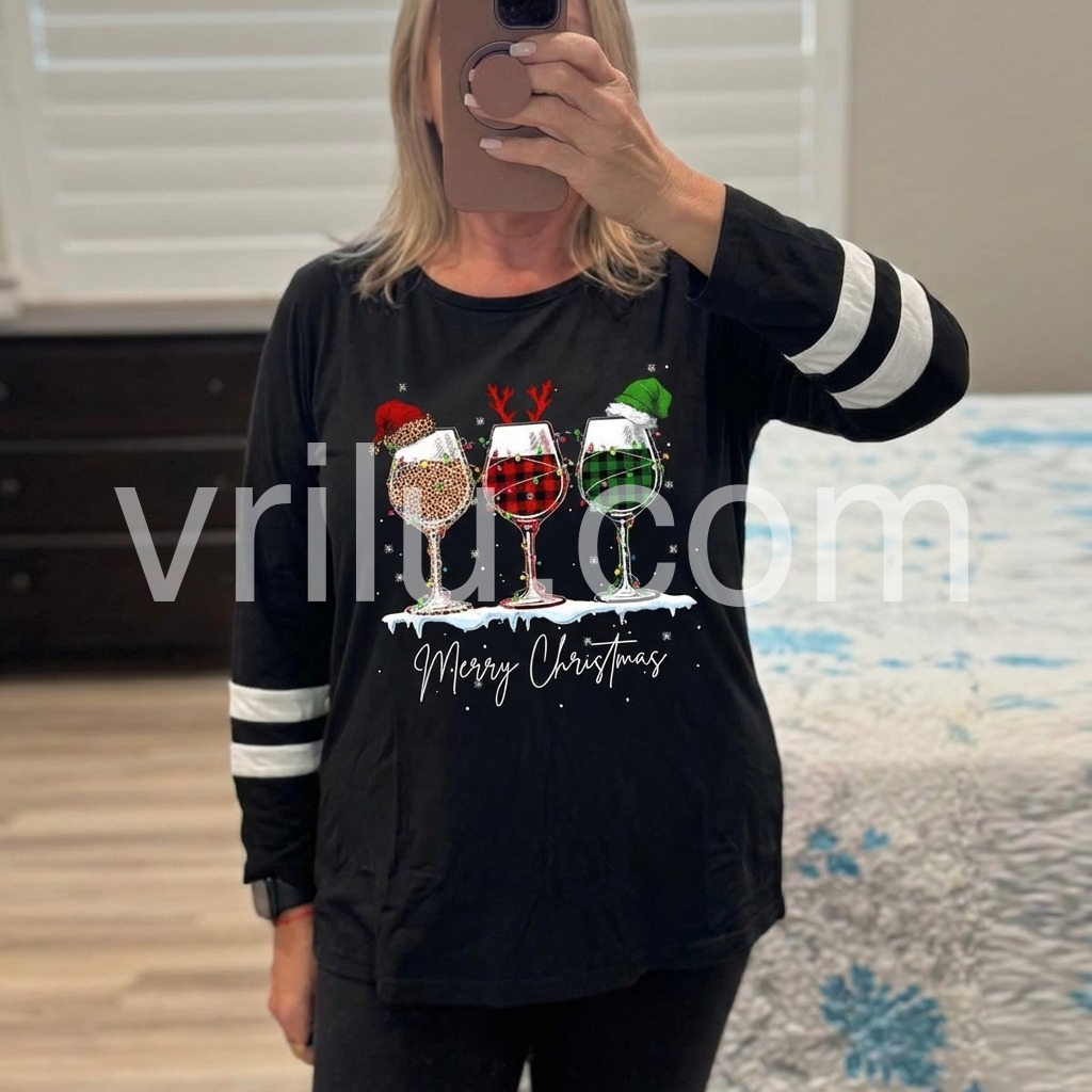 This fashionable top features a classic round neck and flattering 3/4 length sleeves designed to complement any look. Crafted from soft, lightweight fabric for added comfort, the unique and bold print adds a statement-making edge. Perfect for day or night, the stunning black top is sure to elevate your wardrobe.