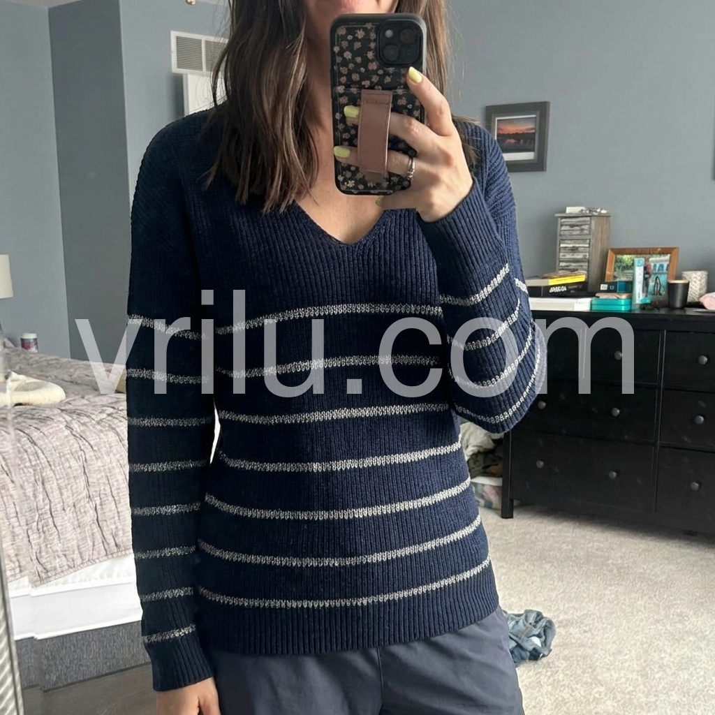 Groovy V-Neck Striped Print Navy Sweater