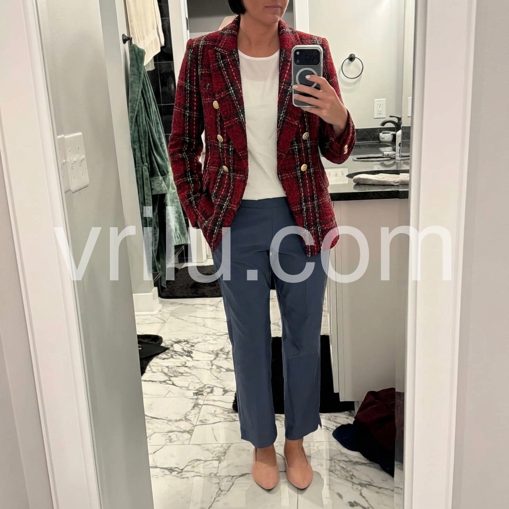 Upgrade your wardrobe with this Red Long Sleeve Check Blazer. This stylish blazer features a bold red color and a classic check print, perfect for making a statement. Crafted with long sleeves, it offers comfort and style all day long. Elevate your look with this versatile piece.