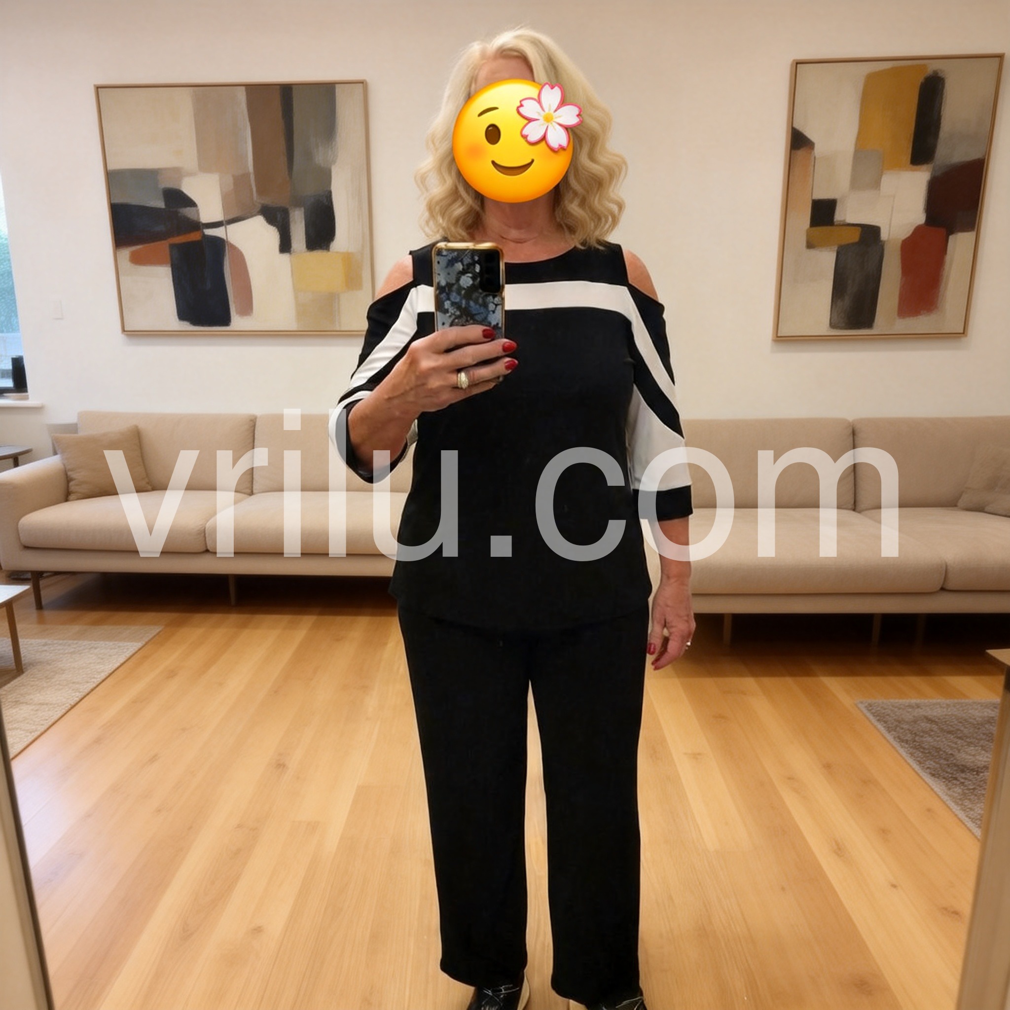 Stay on trend with this trendy round neck color block two piece set. The vibrant color blocking creates a stylish look, while the round neck adds a touch of elegance. Made with high-quality materials, this set is both fashionable and comfortable. Perfect for a casual day out or a night on the town.
