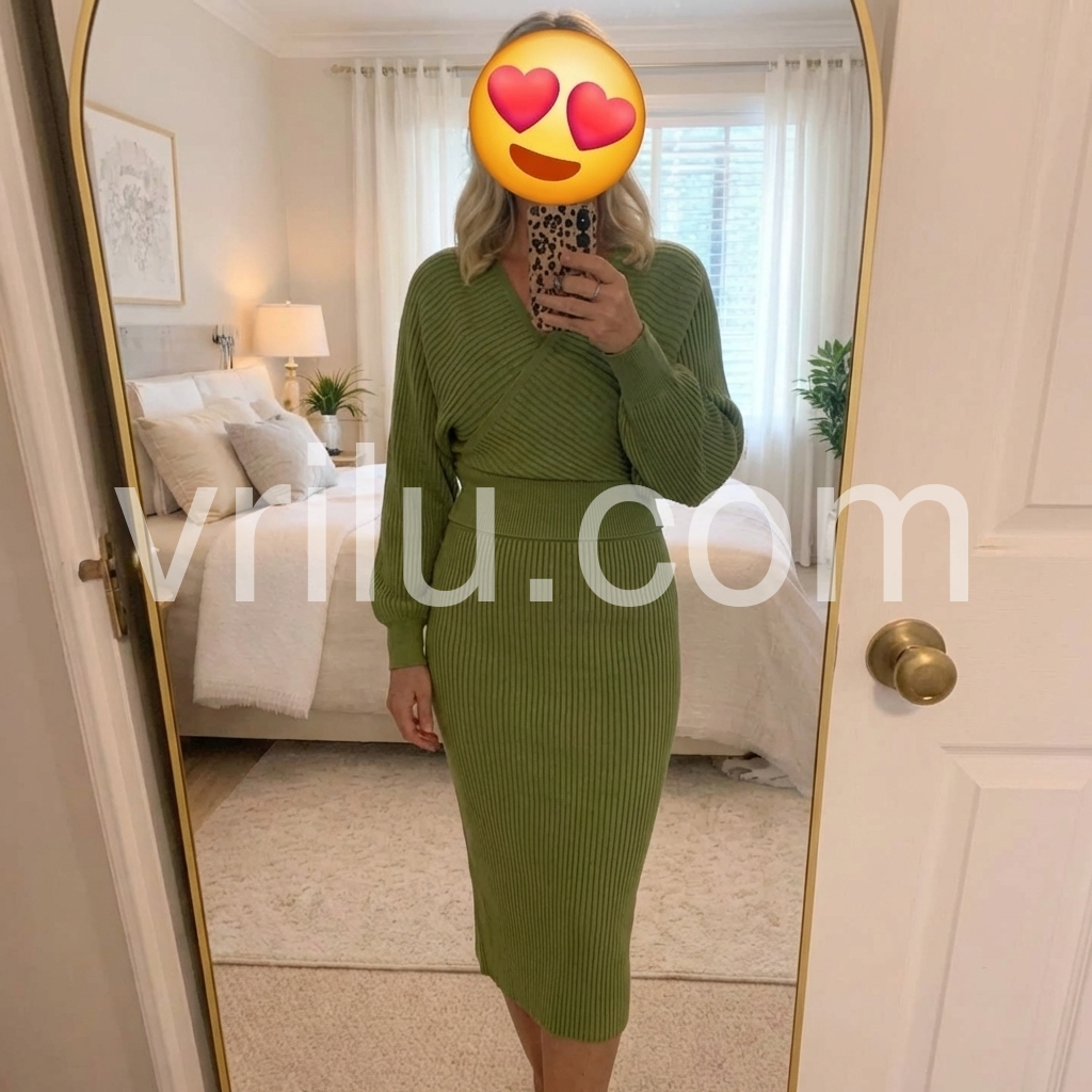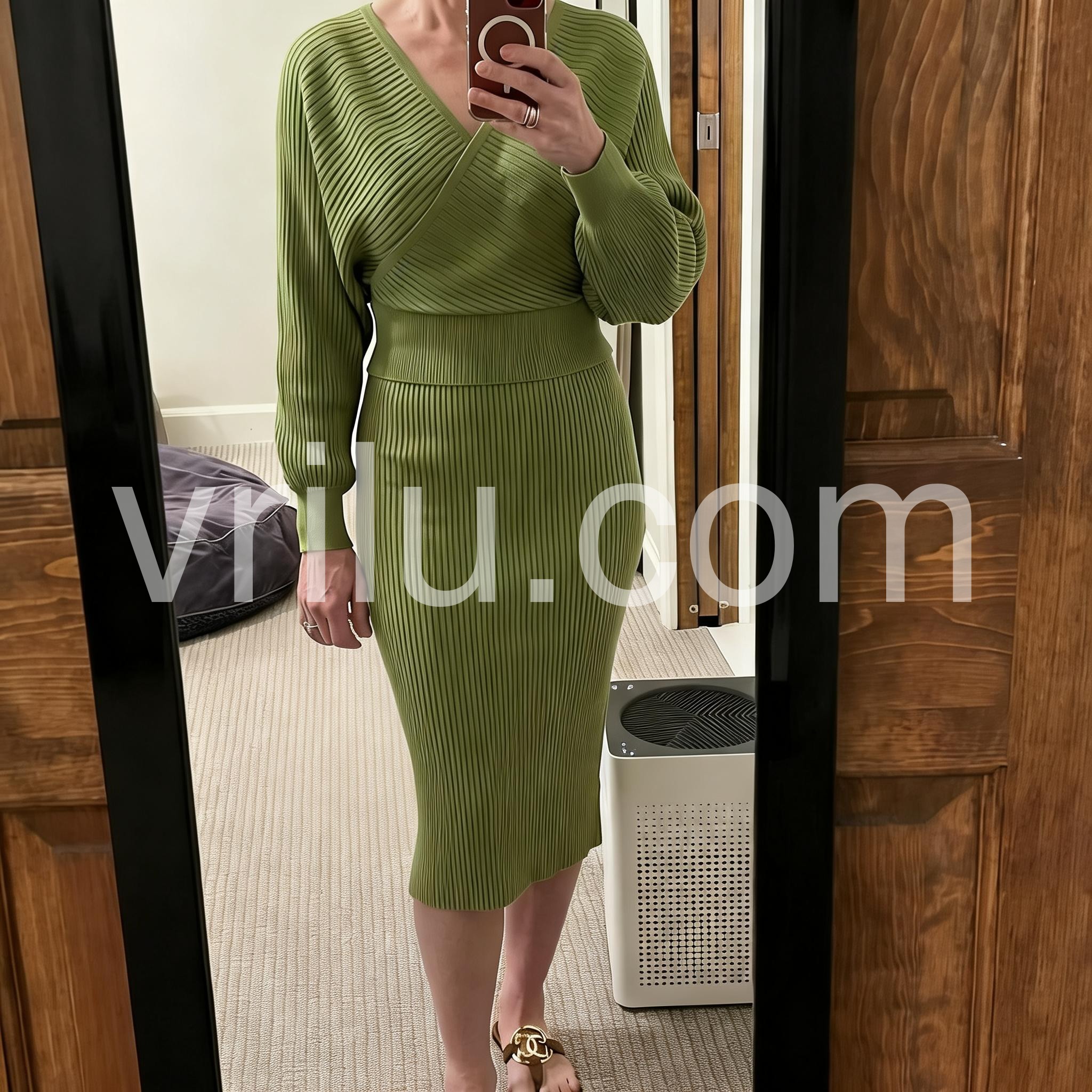 Upgrade your winter wardrobe with our Green Long Sleeve Plain Midi Sweater Dress. The stylish midi length and comfortable long sleeves make it perfect for any occasion. Stay warm and fashionable with this versatile piece.