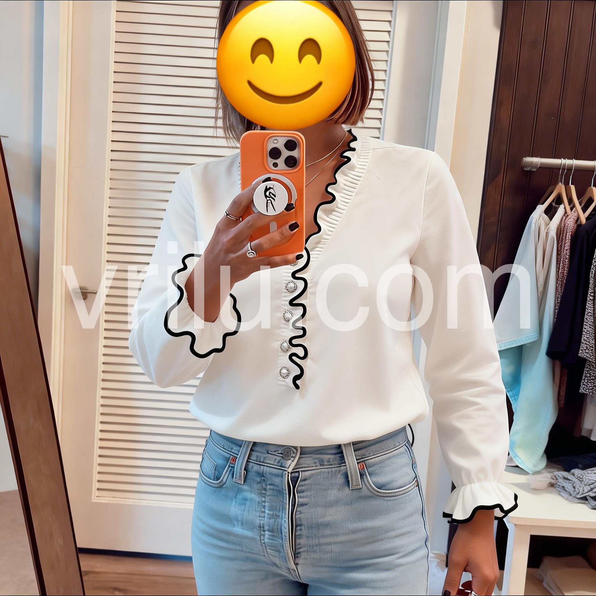 This Unique Trim V-Neck Long Sleeve Sweater offers both style and comfort, making it a versatile addition to any wardrobe. The unique trim detail and v-neck design add a touch of sophistication, while the long sleeves provide warmth. Crafted with high-quality materials, this sweater is both durable and soft to the touch.